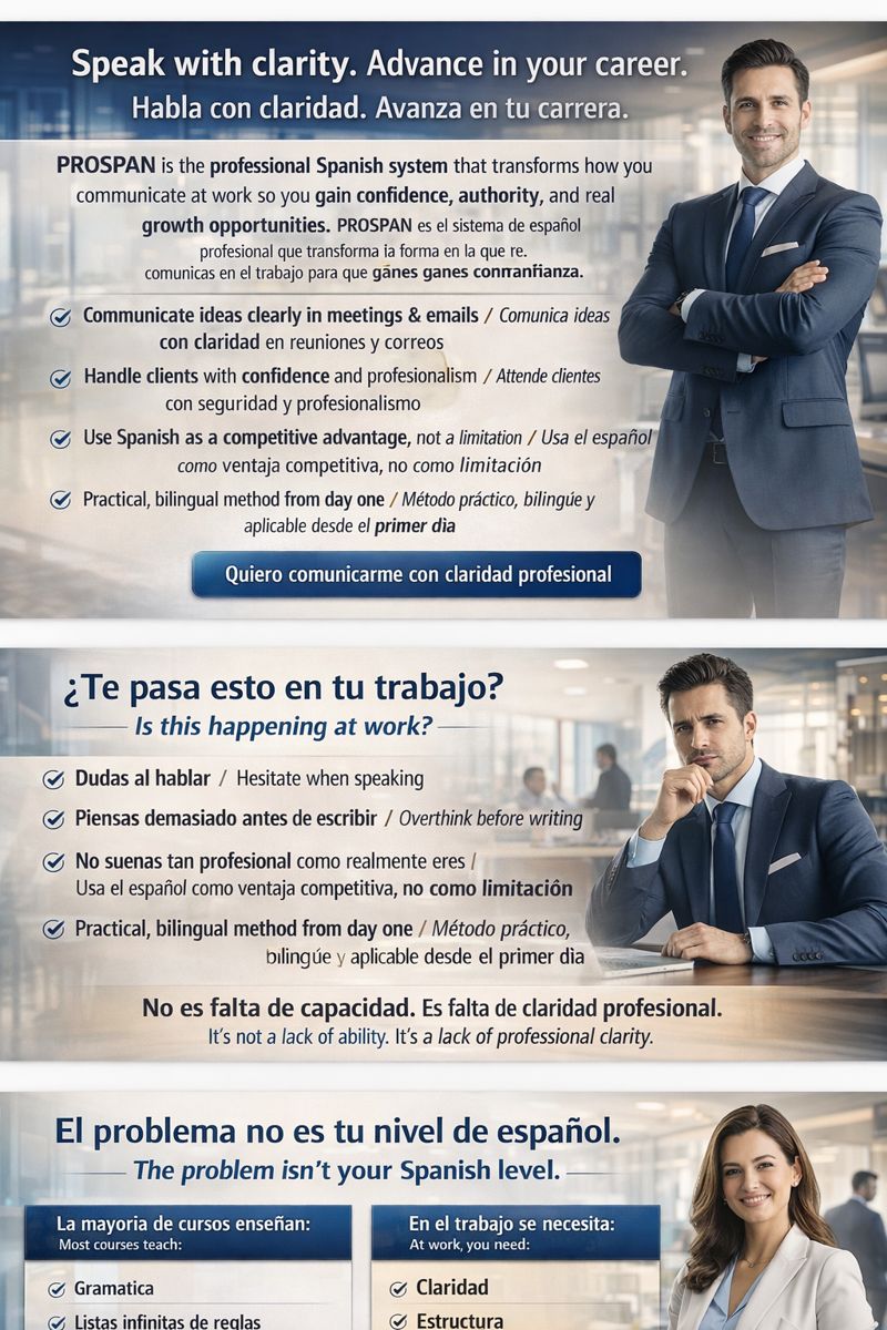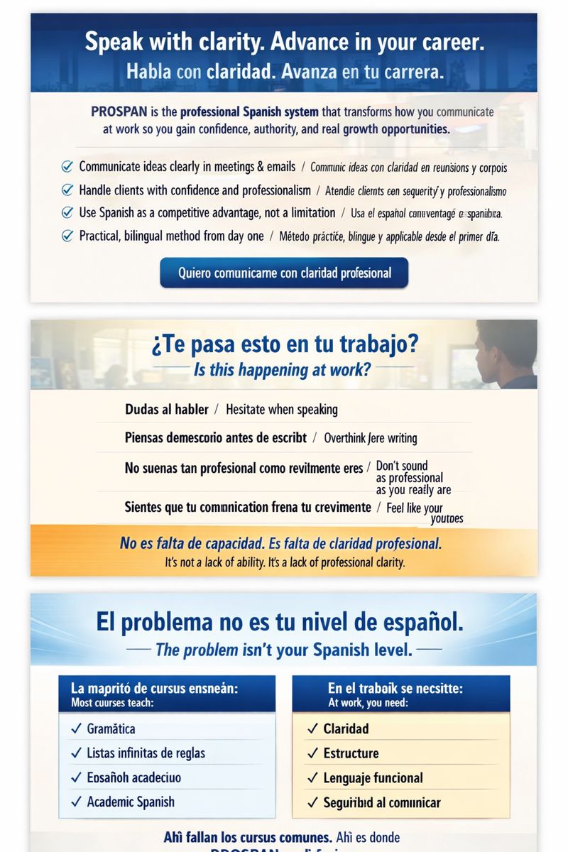That is why I created a method designed to help professionals communicate with confidence, project a strong professional image, and turn Spanish into a real advantage for their careers.